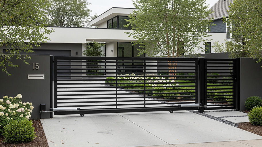 Logic: A swing gate opening “uphill” requires immense torque and specialized hinges. By opting for a slide gate, the motor only has to fight friction, not gravity, which allows for a smaller, cheaper motor.